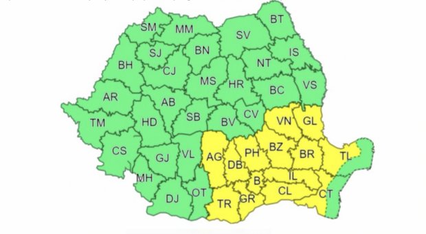 Administrația Națională de Meteorologie a emis, sâmbătă, o atenționare cod galben de instabilitate atmosferică temporar accentuată, valabilă în intervalul 16 iulie, ora 14:00 – 16 iulie, ora 22:00.