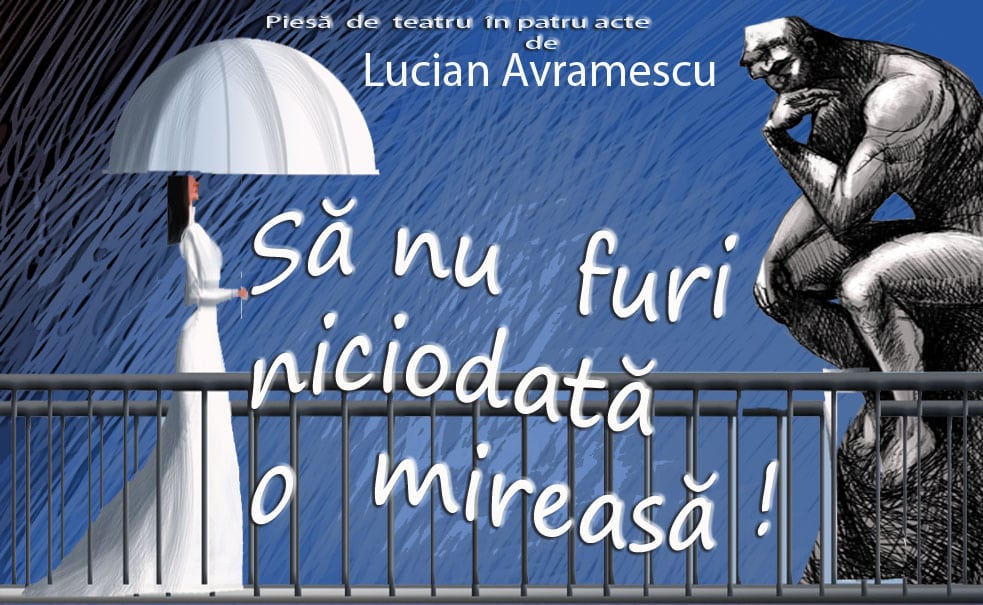 NECUNOSCUTUL: E ea, Dumnezeule, e ea! (Strigă spre ea disperat ) Oprește-te, sunt eu, ne-am iubit până ieri. Ochii mei i-au întâlnit pe ai tăi cândva și de atunci orice aș picta, te pictez pe tine. (Nunta își vede de drumul ei, iar Mireasa nu schițează niciun gest care să dea vreo speranță Necunoscutului). Nu fă asta! Te înșeli! Eu sunt Mirele tău cel adevărat. (Încearcă să-i taie calea. Doi bodyguarzi îl prind de mâini, i le răsucesc la spate, îl smulg deoparte. Grupul elegant al acestei nunți bogate urcă implacabil treptele bisericii și se pierde în interior. Mireasa a fost mereu detașată, părea că nu vede scena care se petrecea lângă ea, iar chipul lui nu-i spunea nimic).